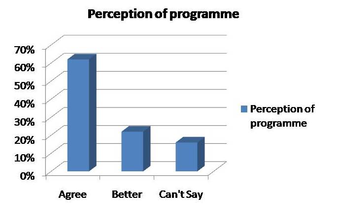The table below reveals that 62% of the audience agrees that the CRS programmes are followed, 22% feel that they are better 16% say can’t say.