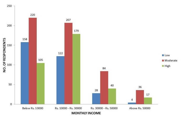 Influence of monthly income on learning skills by mobile use