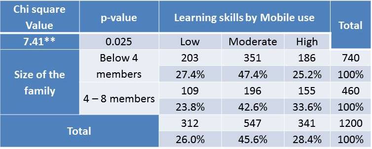 Influence of size of family on learning skills by mobile use