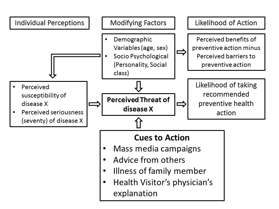 The Health Belief Model (HBM) is a psychological model developed in the U.S. in the 1950s that explains and predicts health behaviors by focusing on the attitudes and beliefs of individuals. The key variables of the HBM are as follows (Rosenstock et al 1994).