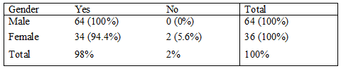 The youth are comfortable using a smartphone as Table 2 shows, with the percentage standing at 98. A hundred percent of male students are acquainted with smartphones, while just 5.6 percent of females are uncomfortable in using a smartphone. This underlines the increasing popularity of smartphones and their advanced functions such as the internet, mobile apps, and games.