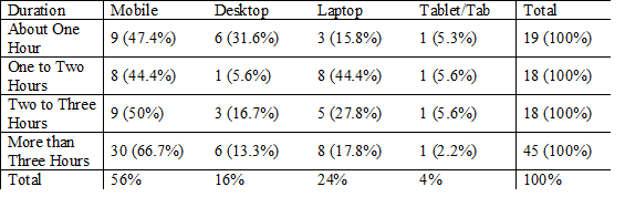 Table 4. Duration of daily internet usage and the preferred mode