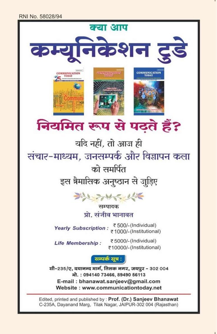 December 10, 2023December 10, 2023communicationtoday11Leave a Comment on New Edition (Oct-Dec., 2023) New Edition (Oct-Dec., 2023) Read Full Edition of Communication Today (Oct-Dec, 2023) Read Full Edition of Communication Today (Oct-Dec., 2023) Share this: Share on X (Opens in new window) X Share on Facebook (Opens in new window) Facebook Like Loading... Related