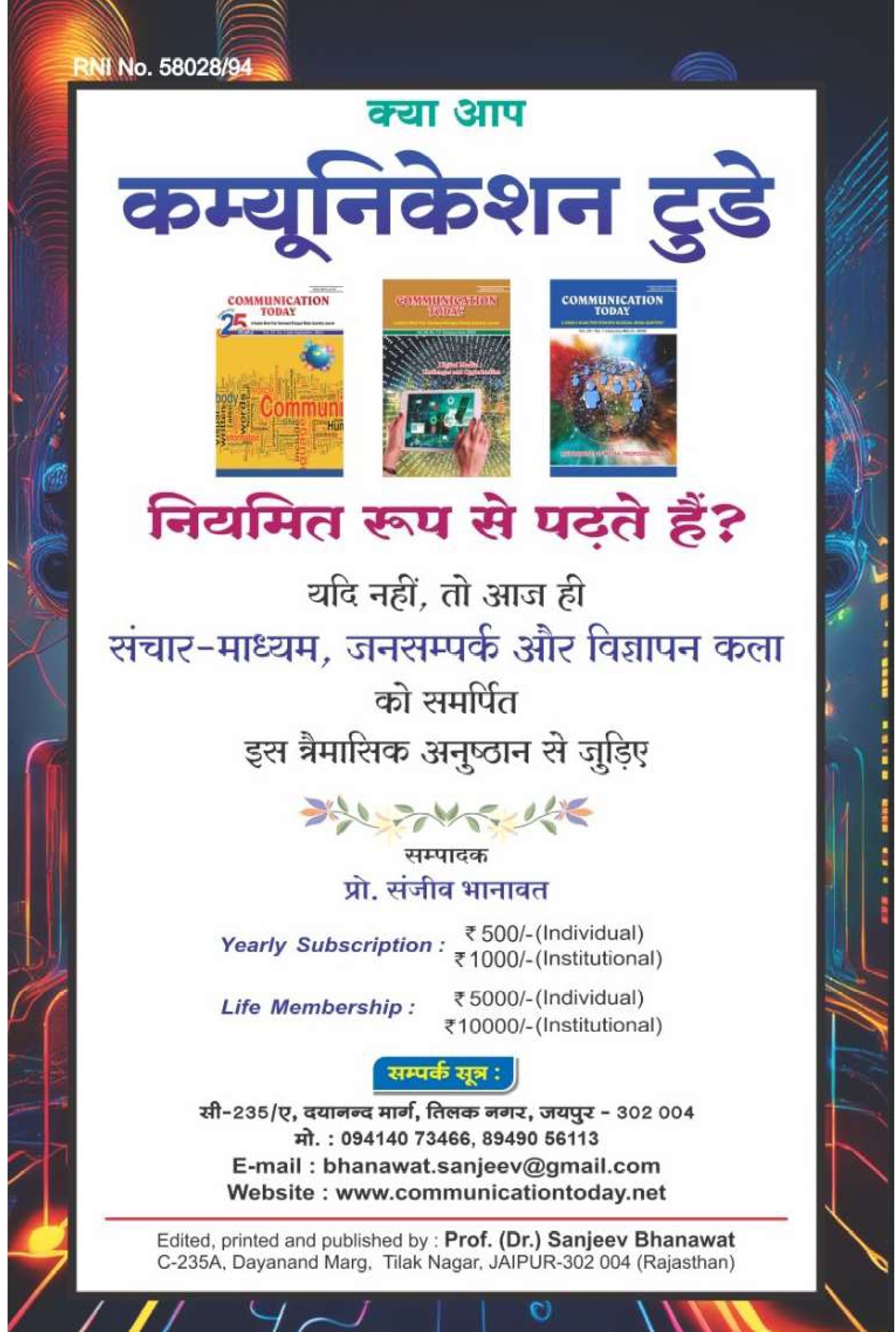October 3, 2024communicationtoday11Leave a Comment on New Edition (Oct-Dec., 2024) New Edition (Oct-Dec., 2024) Read Full Edition of Communication Today (Oct-Dec, 2024) Read Full Edition of Communication Today (Oct-Dec., 2024) Share this: Click to share on X (Opens in new window) X Click to share on Facebook (Opens in new window) Facebook Like Loading... Related