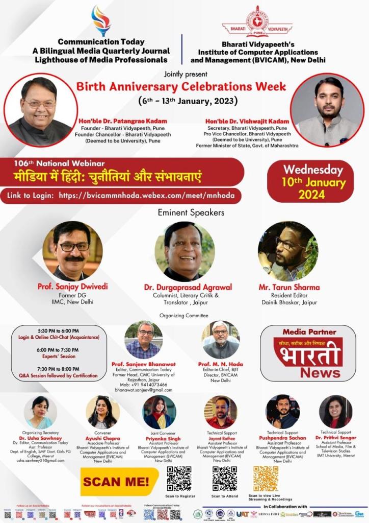 January 16, 2024 | 06:00 PM - 106th Media Lecture Series: ‘मीडिया में हिंदी: चुनौतियां और संभावनाएं’
