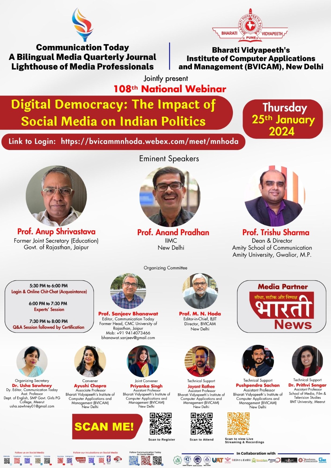 January 29, 2024 | 06:00 PM - 108th Media Lecture Series: ‘Digital Democracy: The Impact of Social Media on Indian Politics‘