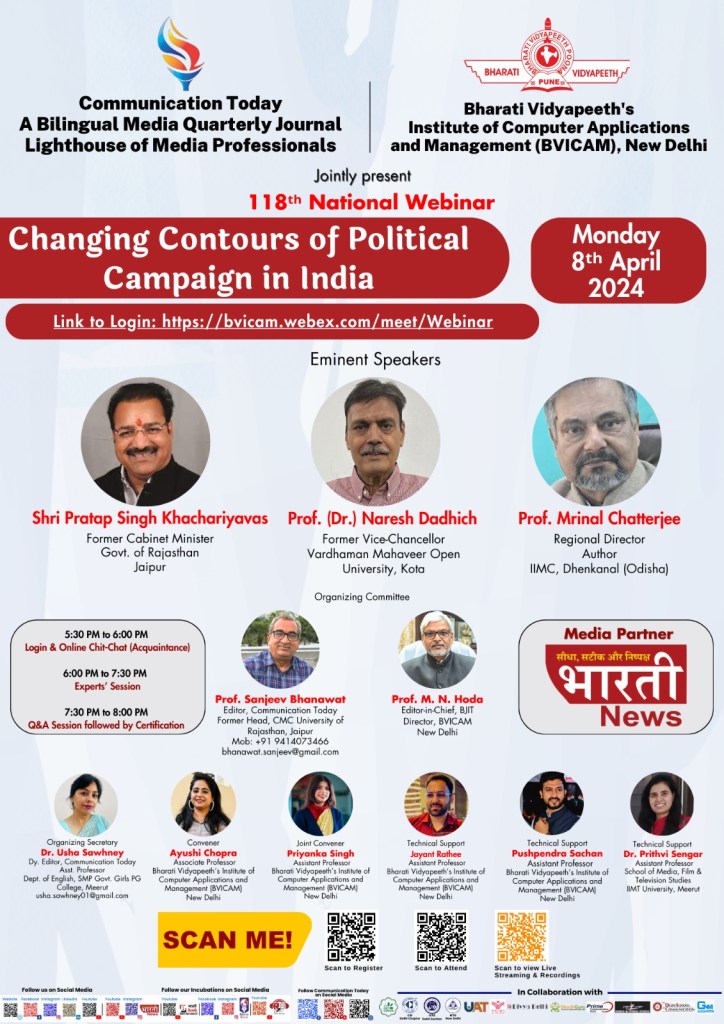 April 18, 2024 | 06:00 PM - 118th Media Lecture Series: Changing Contours of Political Campaign in India