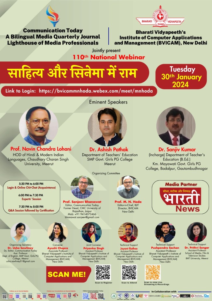 February 07, 2024 | 06:00 PM - 110th Media Lecture Series: ‘साहित्य और सिनेमा में राम’