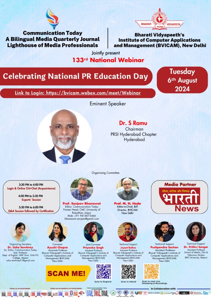 Aug 29, 2024 | 06:00 PM - 133th Media Lecture Series: National PR Education Day