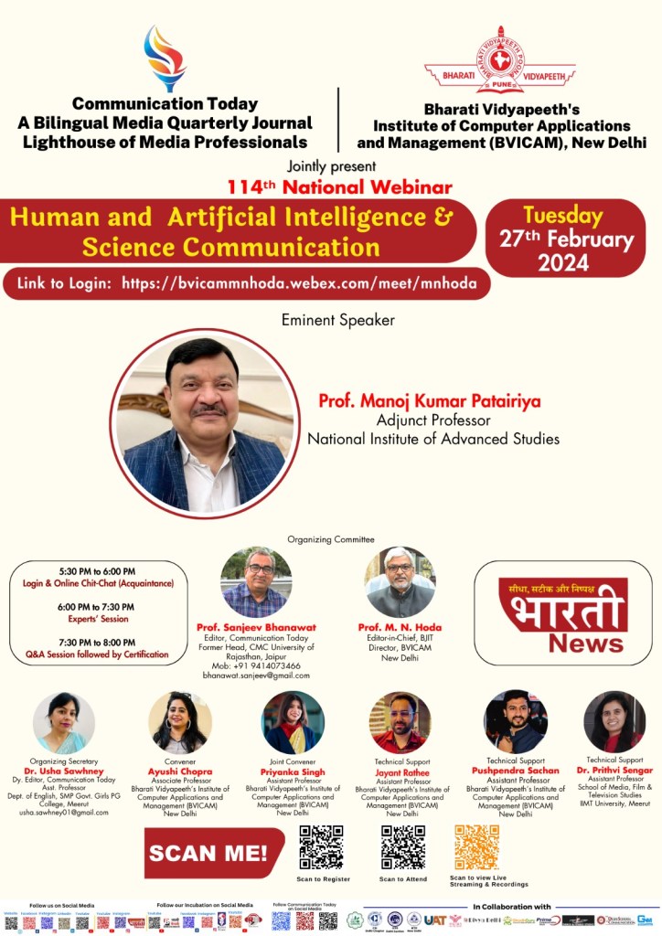 March 07, 2024 | 06:00 PM - 114th Media Lecture Series: Human and Artificial Intelligence & Science Communication’