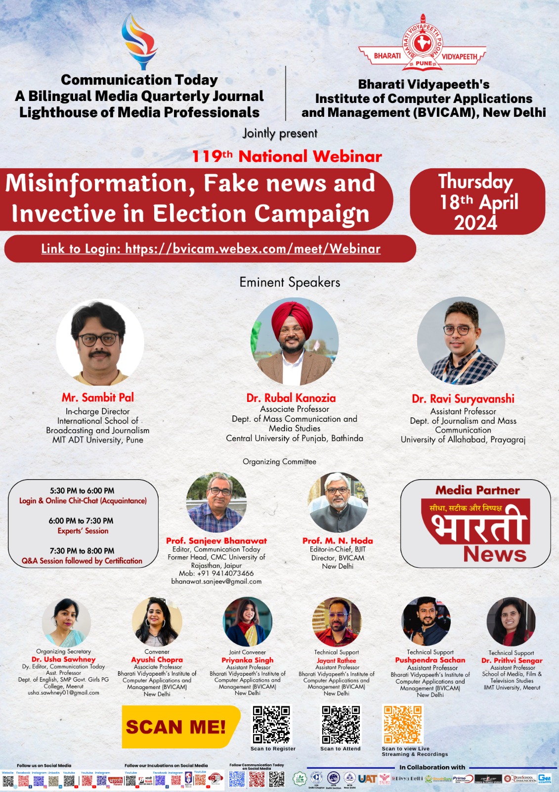 April 23, 2024 | 06:00 PM - 119th Media Lecture Series: Misinformation, Fake News and Invective in Election Campaign