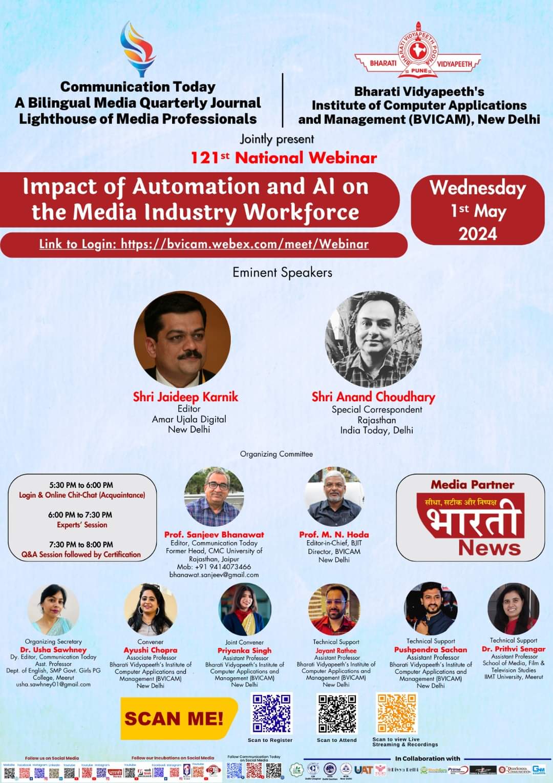 May 03, 2024 | 06:00 PM - 121st Media Lecture Series: Impact of Automation and AI on the Media Industry Workforce