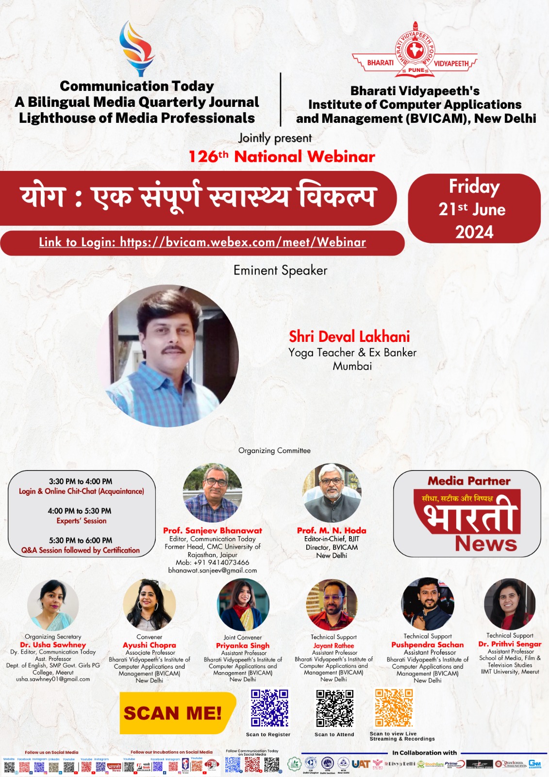 Jul 01, 2024 | 06:00 PM - 126th Media Lecture Series: योग एक संपूर्ण स्वास्थ्य विकल्प