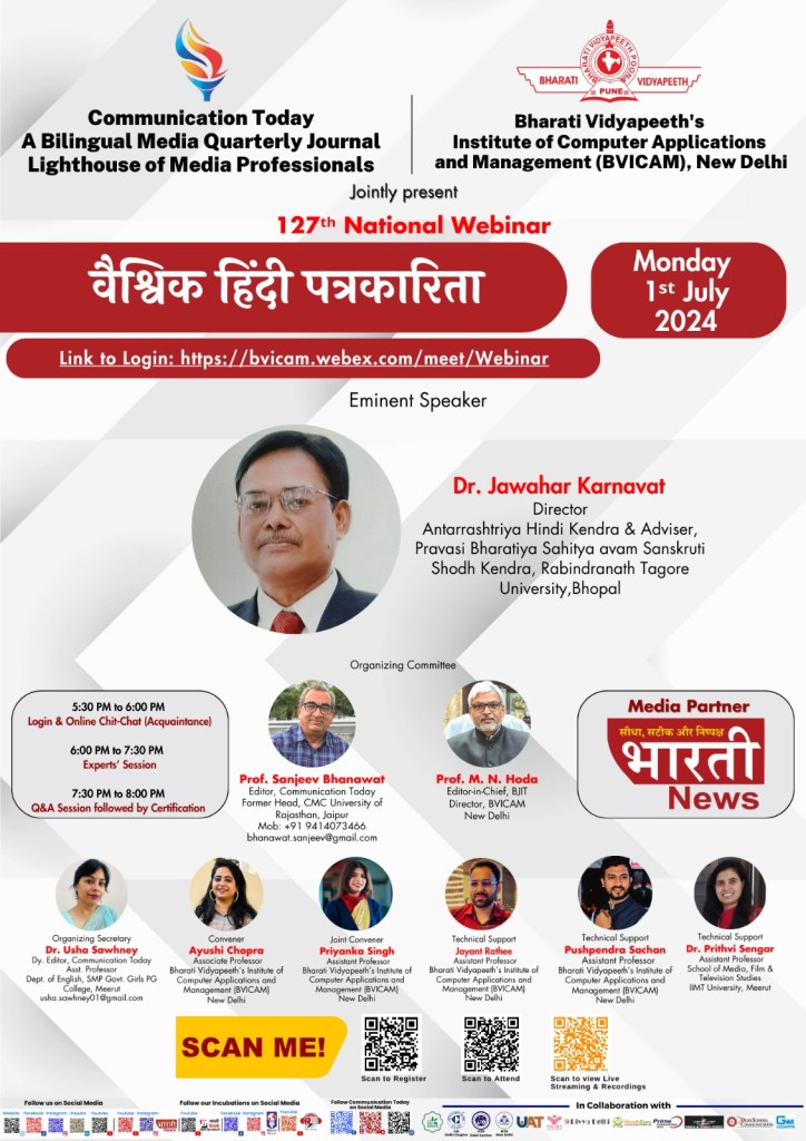 Jul 06, 2024 | 06:00 PM - 127th Media Lecture Series: वैश्विक हिंदी पत्रकारिता
