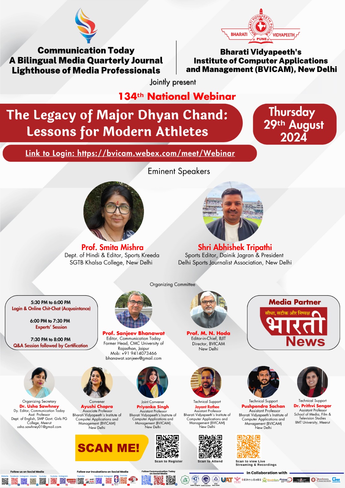 Sep 05, 2024 | 06:00 PM - 134th Media Lecture Series: The Legacy of Major Dhyan Chand: Lessons for Modern Athletes