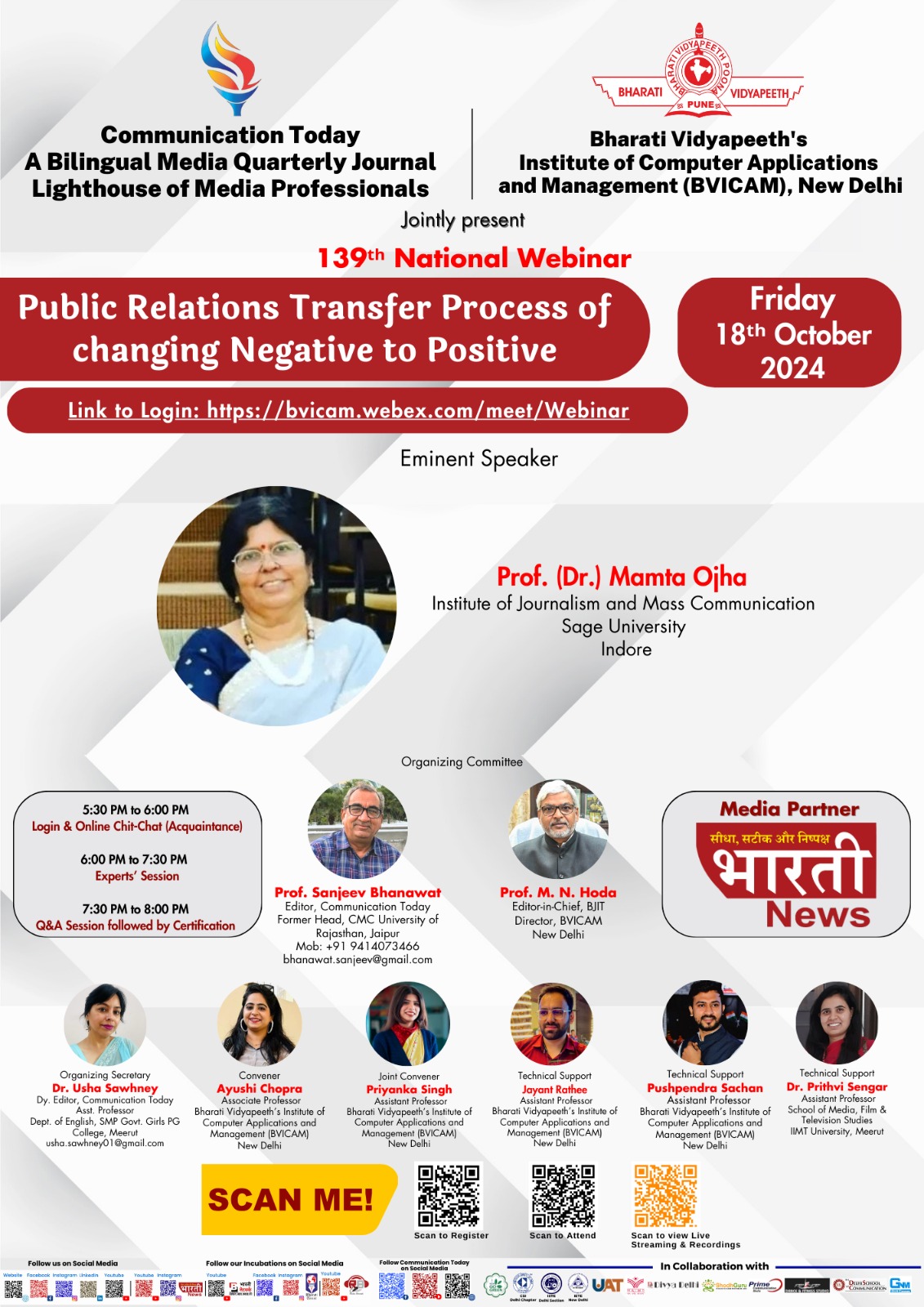 Oct 24, 2024 | 06:00 PM - 139th Media Lecture Series: Public Relations Transfer Process of changing Negative to Positive