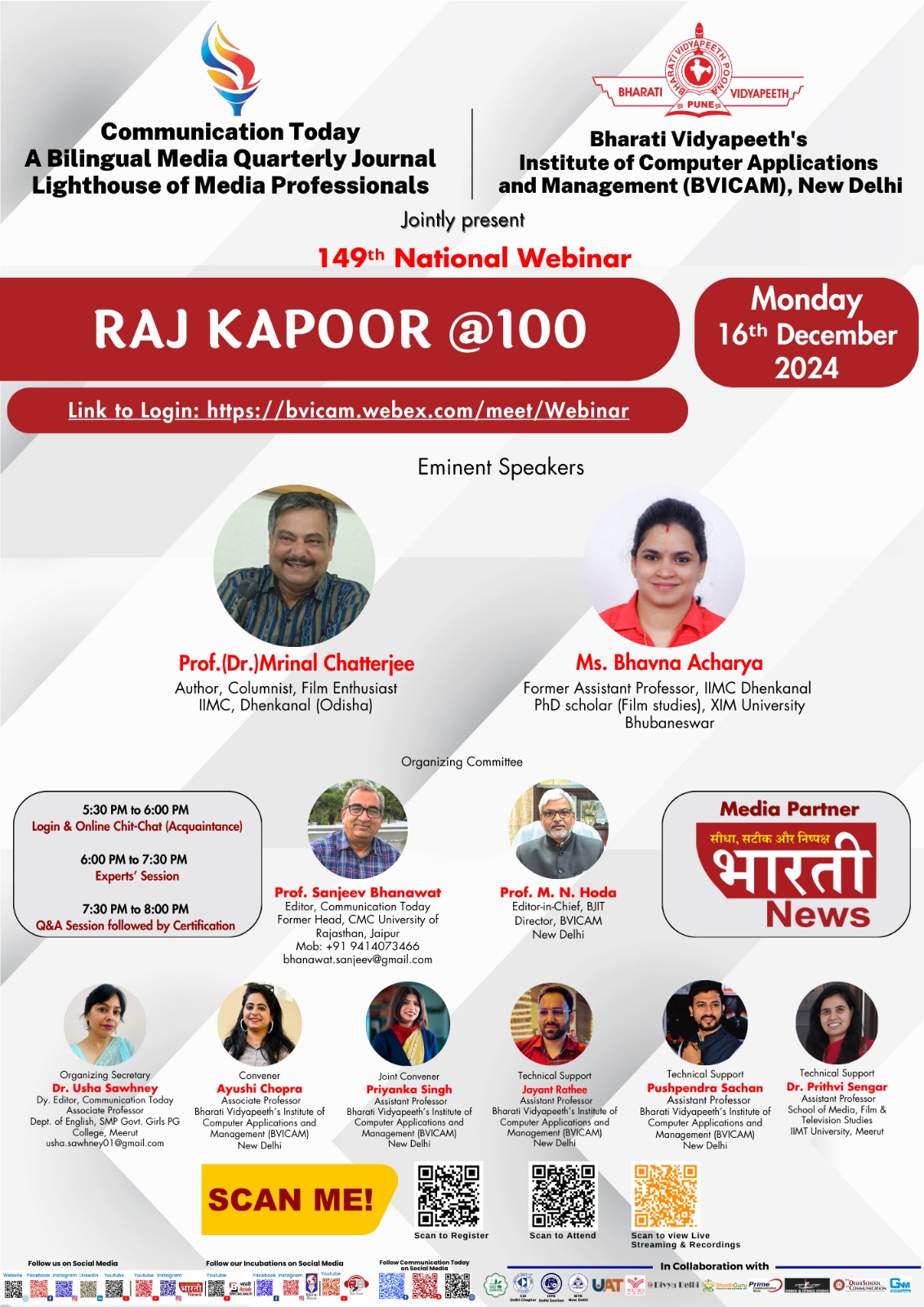 Dec 21, 2024 | 06:00 PM - 149th Media Lecture Series: ‘RAJ KAPOOR @100‘
