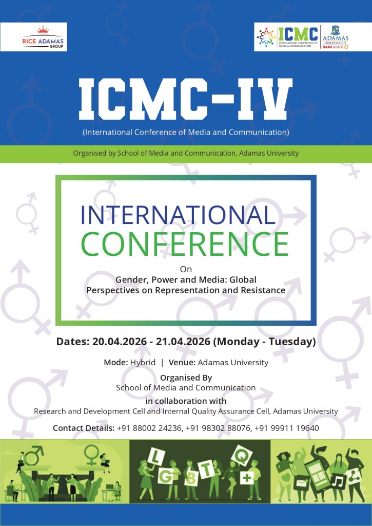 Theme: Gender, Power and Media: Global Perspectives on Representation and Resistance Dates: April 20–21, 2026 Mode: Hybrid (In-person at Adamas University & Online)