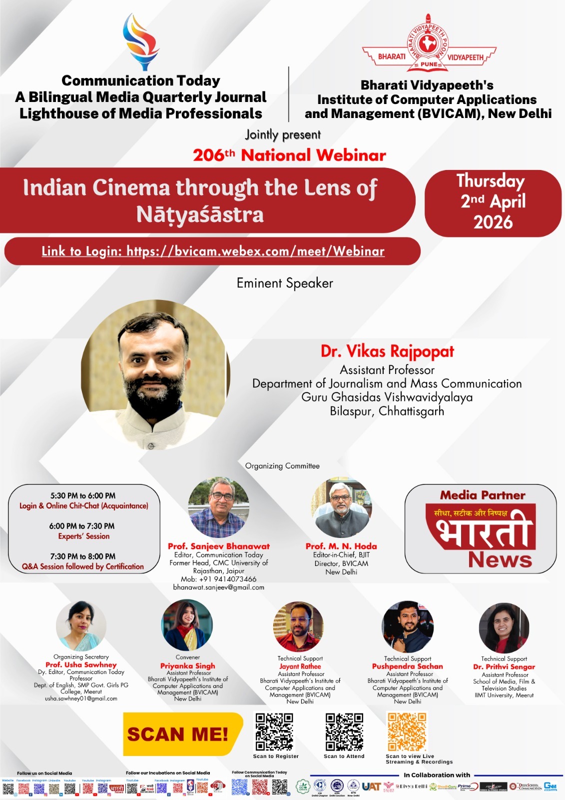 March 31, 2026communicationtoday11Leave a Comment on Webinar 2026-27 Webinar 2026-27 Banners Videos List of National Webinars 206th Media Lecture Series: ‘Indian Cinema through the Lens of Nāṭyaśāstra’Apr 02, 2026 | 05:30 PM Banners ▲ Webinar 2026-27 YouTube Videos ▲ Webinar 205 थिएटर से कैमरे तक: अभिनय की यात्रा और चुनौतियाँ Share this: Share on X (Opens in new window) X Share on Facebook (Opens in new window) Facebook Like Loading... Related