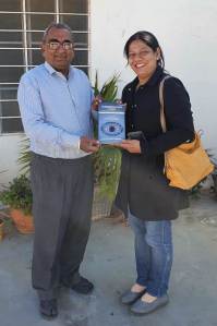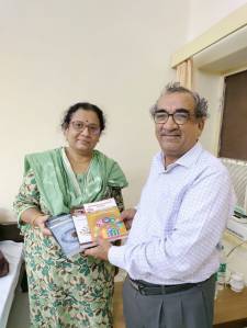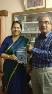 Presenting copies of Communication Today to Prof Uma Joshi, Former Dean, Faculty of Home Science, MS University, Baroda in University guest house, Jaipur