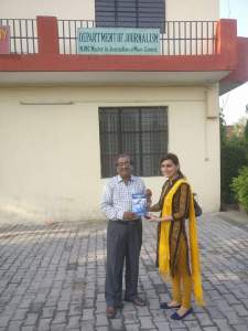 Presenting a copy of Communication Today to Ms Shikha Dhama, teaching journalism in a private college of Meerut