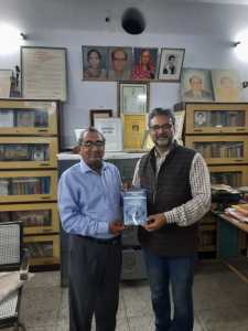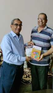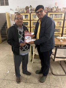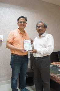 Presenting a copy of Communication Today to Prof Anil Mehta, Former Head, Dept of Business Administration, University of Rajasthan, at my residential library Jaipur