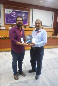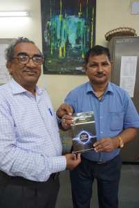 Presenting a copy of Communication Today to Prithvi Senger, Research Scholar, Centre for Mass Communication, University of Rajasthan
