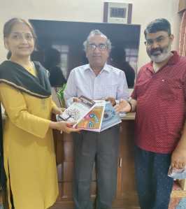 विश्वविद्यालय अनुदान आयोग के अध्यक्ष प्रो डीपी सिंह को उनके कार्यालय में कम्युनिकेशन टुडे और संजीव समय की प्रति भेंट करते हुए साथ में है आयोग के सचिव डॉ रजनीश जैन तथा रानी दुर्गावती विश्वविद्यालय जबलपुर की पत्रकारिता की पूर्व अध्यक्ष डॉ उषा त्रिपाठी