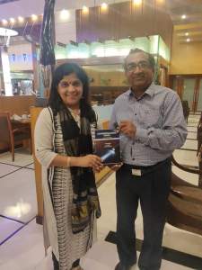 Presenting a copy of Communication Today to Dr Gayatri Ray, Assistant Professor, Amity University, Rajasthan, Jaipur