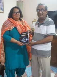 Presenting a copy of Communication Today to Prof Virbala Agrawal, former head, Department of Journalism and Mass Communication, HP University, Shimla