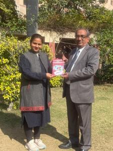 Presenting a Copy of Communication Today to Dr. Gunjan Vaid, Associate Professor, Commissionerate College Education, Rajasthan, Jaipur