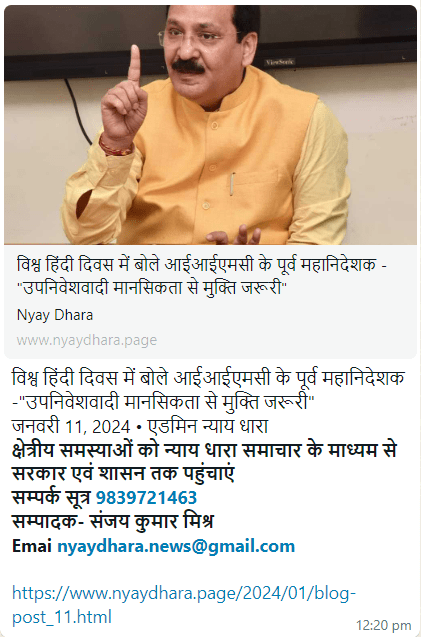 Press Release इवनिंग टाइम्स, बिलासपुर, 11 जनवरी, 2024 Share this: Click to share on X (Opens in new window) X Click to share on Facebook (Opens in new window) Facebook Like Loading...